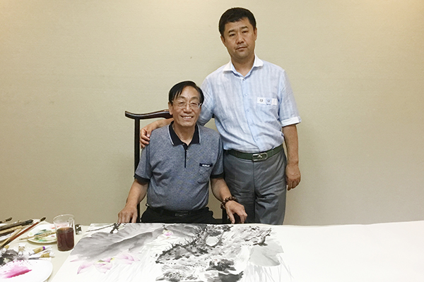 昌宇集团董事长李刚与著名画家许勇在工作室