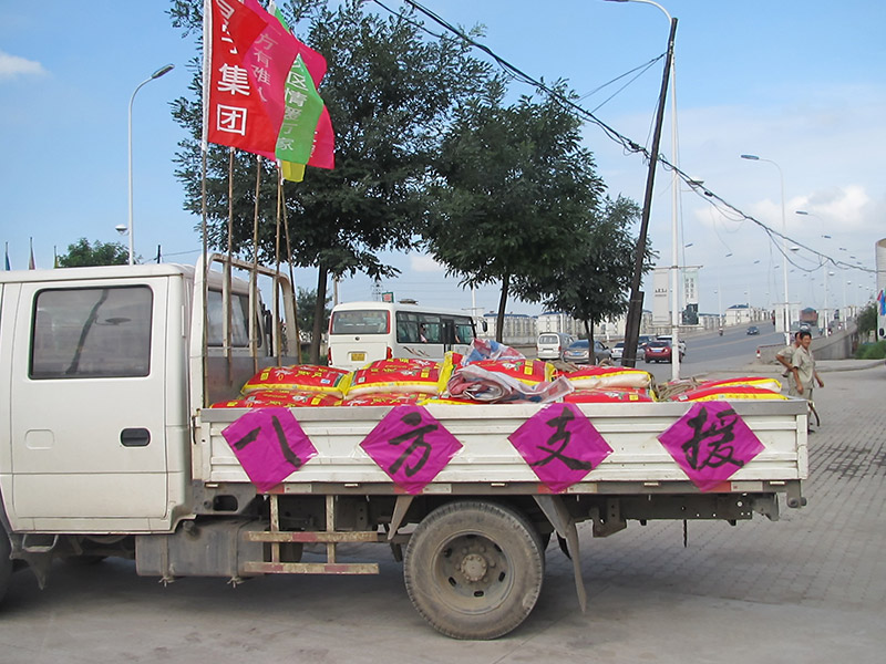 2011年8月14日为盖州小石硼水灾捐赠大米