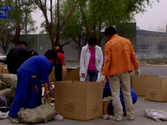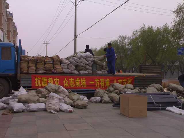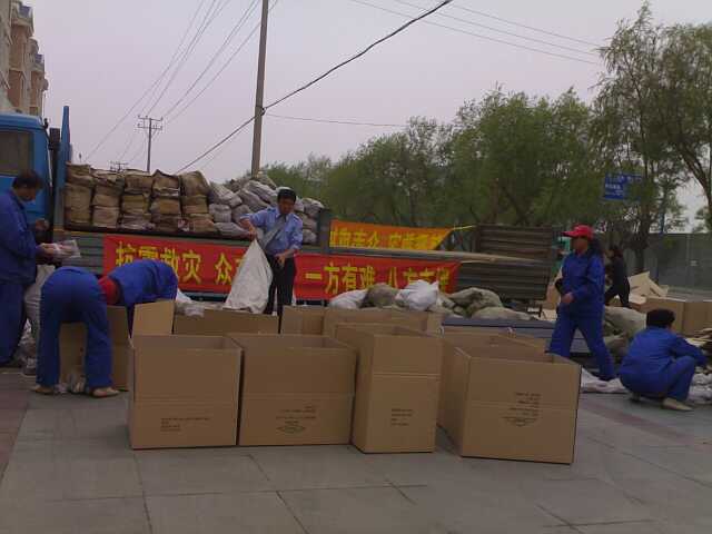 2008年5月18日为汶川地震捐赠胶鞋、衣物等救灾物品